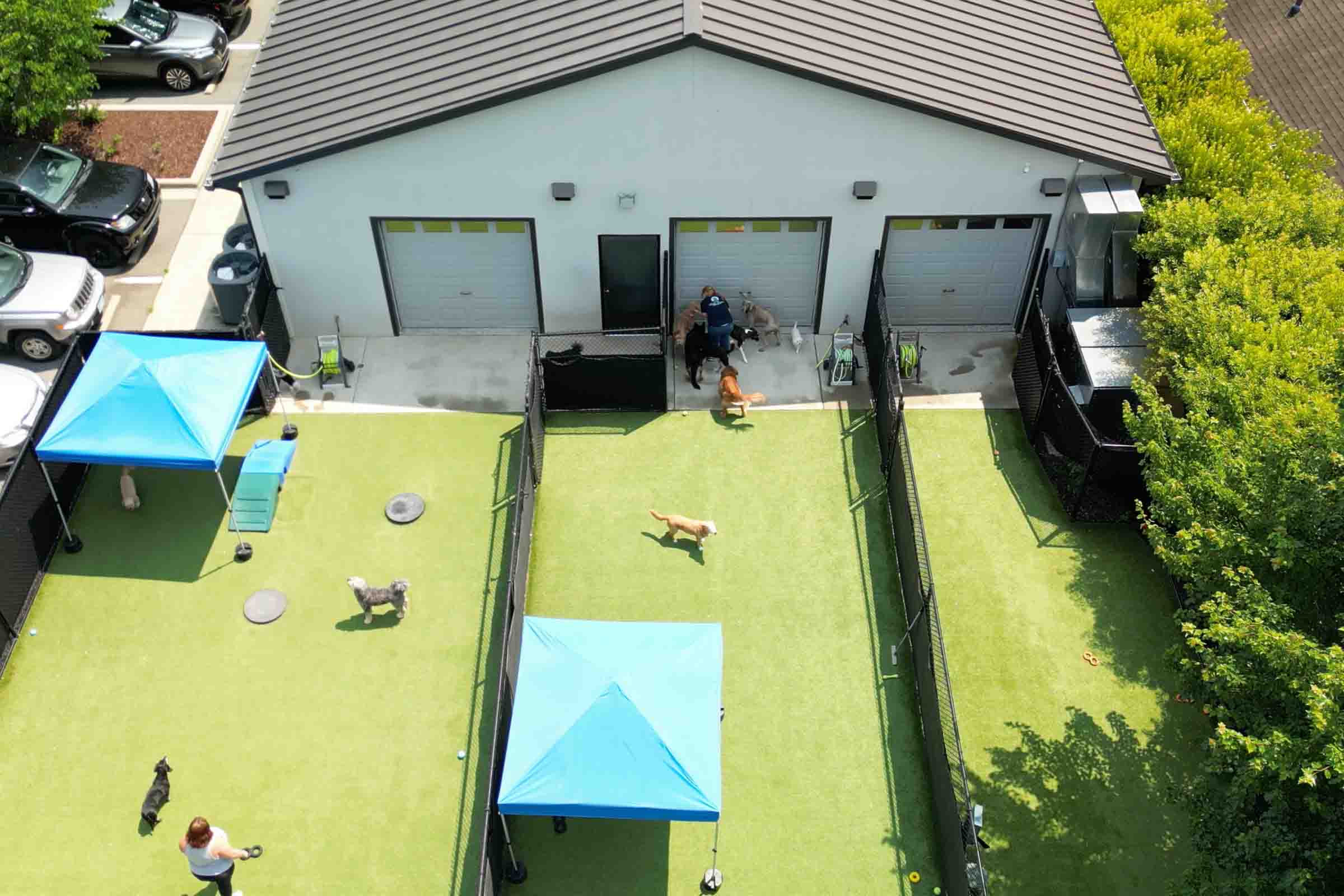 Your dog will enjoy both indoor and outdoor play areas throughout the day, because fun shouldn't depend on the weather forecast. Because your dog deserves a social life too, we carefully match playgroups based on size, energy level, and play style.